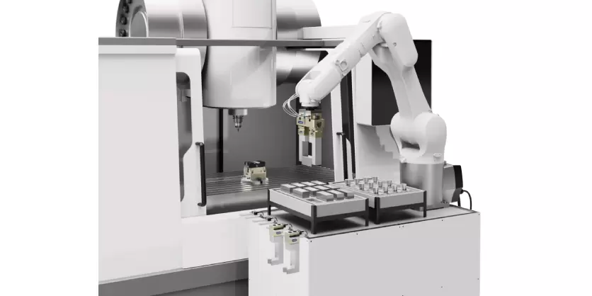The robot moves upwards out of the jaw quick-change system, and the fingers and the base remain in the storage station. No additional effort is required as the robot performs the change with its own force. The new system design eliminates the need to drill through the finger, and only threaded holes are required. This gives users even more freedom when designing their fingers.